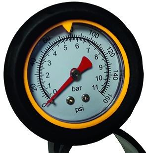 POMPE PER CICLI VIGOR ACC.GRANDE – fusto Ø 38 mm e stelo pompante in acciaio, con manometro su impugnatura, pressione max 11 bar, stelo acciaio, altezza pompa 60 cm