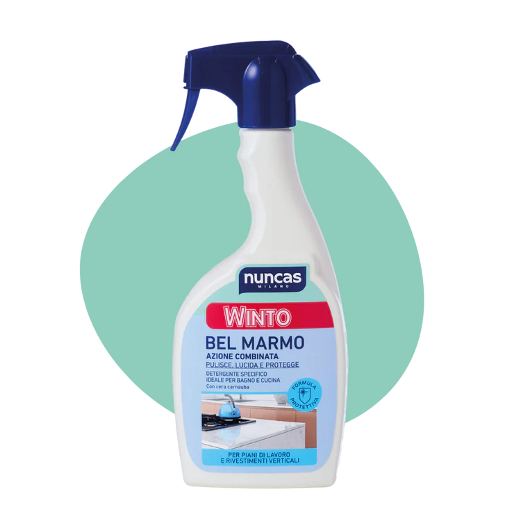 Bel Marmo è un prodotto specifico e innovativo, adatto alla pulizia e alla cura di tutte le superfici in marmo, anche le più delicate. La sua formula particolarmente avanzata è stata studiata per pulire con un’unica spruzzata tutte le superfici in marmo, lasciandole lucide e protette sotto una pellicola invisibile che agisce da barriera idrorepellente contro macchie colorate e sporco. E’ indispensabile per prevenire la formazione di aloni e tracce indelebili che una volta assorbite nella pietra ne rimangono intrappolate per sempre. Sicuro al contatto con alimenti, non si trasmette e non lascia residui nel cibo.PREZZO VALIDO SOLO PER ACQUISTI ONLINE