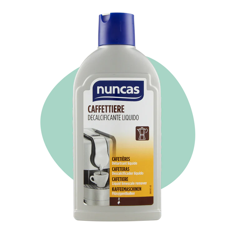 Decalcificante liquido per la manutenzione periodica di caffettiere e macchine per caffè espresso. Elimina il calcare che si deposita nel serbatoio dell’acqua e nei filtri, senza intaccare le componenti plastiche come guarnizioni o tubature.