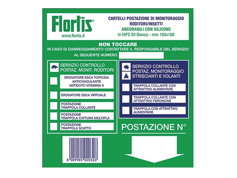 Cartello in plastica per la segnalazione della posizione controllo roditori e o insetti. Da utilizzarsi per segnalare la presenza della postazione in conformità con la corretta procedura di derattizzazione e controllo presenze insetti con procedura HACCP.