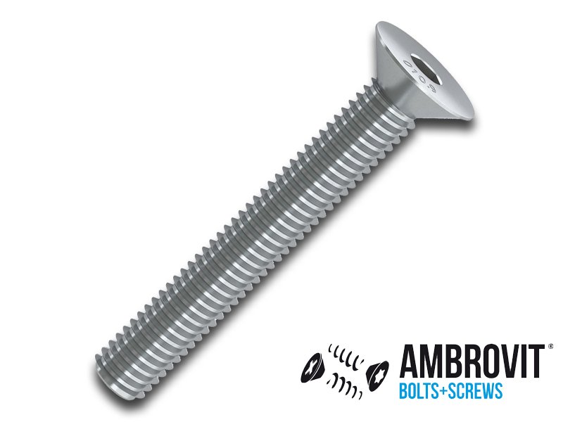 Viti zincate a testa svasata piana, esagono incassato. DIN 7991 – UNI 5933 – ISO 10642 Acciaio ad alta resistenza, classe 10.9 Resistenza alla rottura: 1000N/mm2 Limite elasticità: 900N/mm2 Allungamento min: 9%.
