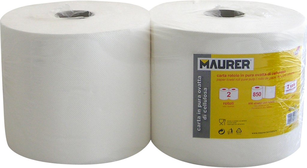 Carta multiuso MAURER in pura cellulosa a 2 veli, 850 strappi – confezione da due rotoli