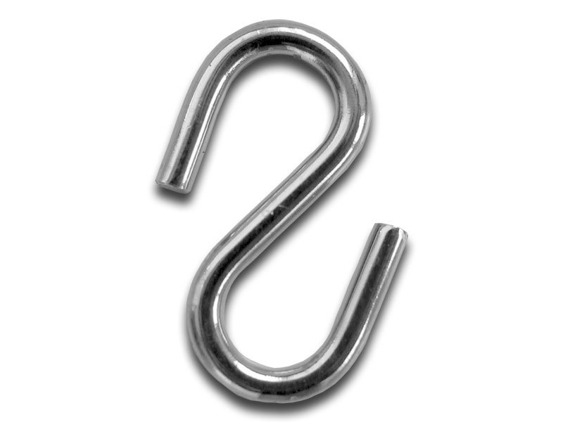 Ganci ad esse o S in ferro nichelato, per appendere quadri a parete utilizando la catena genovese ed anche per appenderia varia nei supermercati.