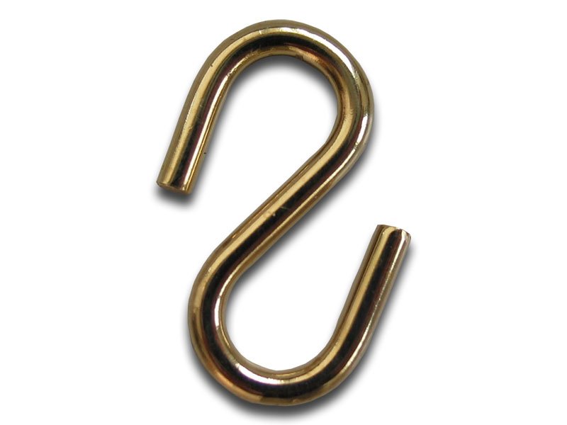 Ganci ad esse o S in ferro ottonato, per appendere quadri a parete utilizando la catena genovese ed anche per appenderia varia nei supermercati.