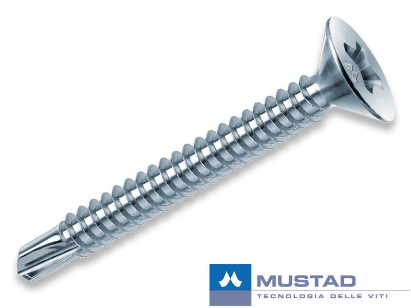 Vite autoperforante ed autofilettante Drillex, zincata bianca. Testa svasata piana a croce. Specifica per l’avvitamento diretto sul lamiere, profilati metallici e PVC.