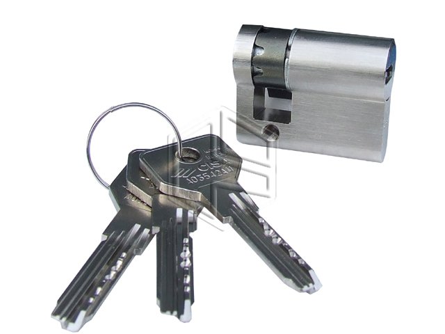 Cisa 0E304 Mezzo Cilindro europeo Asix, in ottone nichelato, camma compatibile DIN, regolabile in 8 posizioni, fornito con 3 chiavi.