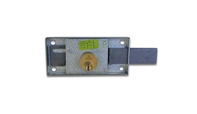 Cisa 41110 Serratura per serrande, destra, fornita con 3 chiavi, 2 esterne + 1 interna. Dimensioni: mm.H55xL155xP15, sporgenza cilindro mm.11,5.