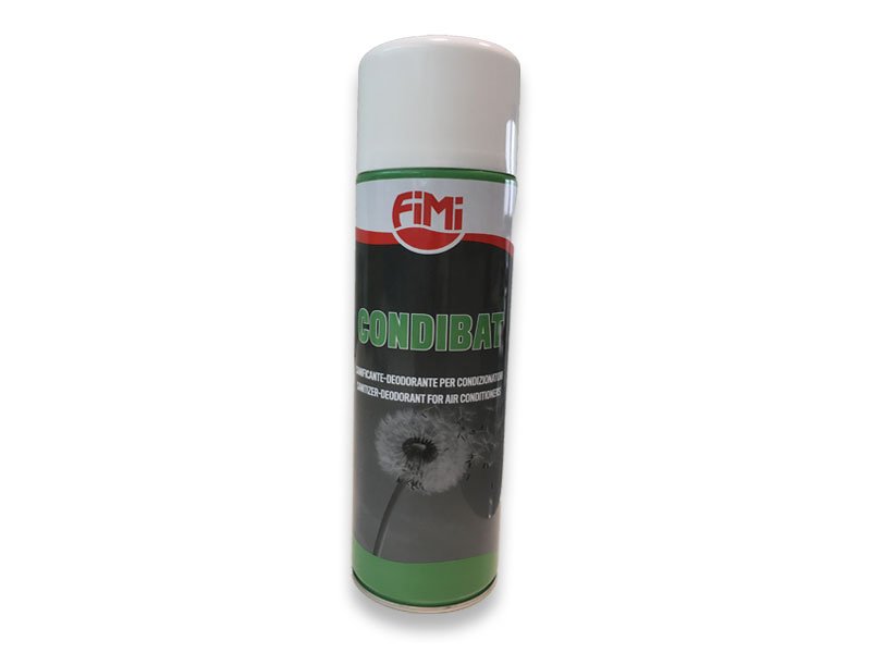CONDIBAT, miscela di agenti antibatterici e germicidi in soluzione alcolica, è indispensabile per la sanificazione dei pacchi alettati e dei filtri degli impianti di condizionamento (split, ventilconvettori), di ambienti e superfici non porose. E’ efficace per ridurre il rischio di contagio da Legionella. Elimina la sorgente di cattivi odori (funghi, muffe) e lascia sulle superfici e negli ambienti trattati un gradevole profumo di fiori di campo. Non aggredisce le superfici trattate. Caratteristiche: azione battericida (salmonella, Legionella), sanificante, deodorante, antibacilli, antivirus (HIV-1 virus AIDS), funghicida, controlla le muffe. Applicare su superfici preventivamente pulite.