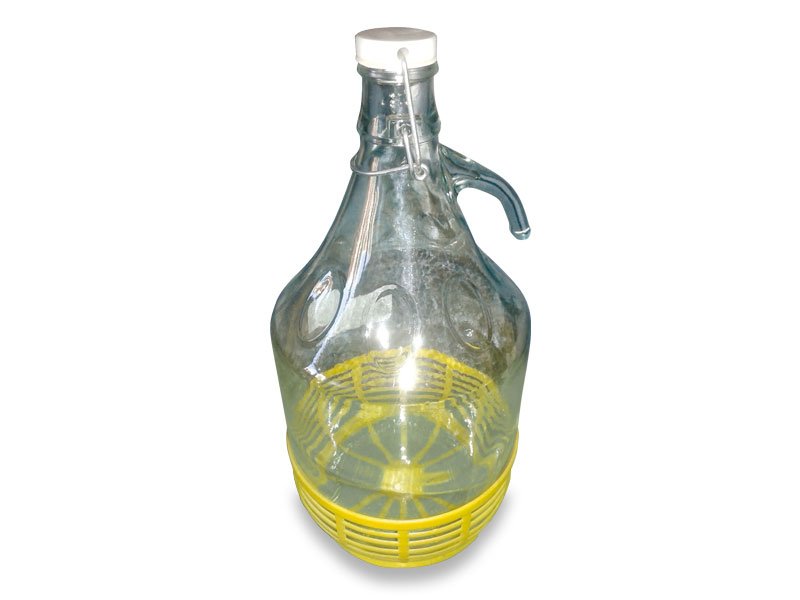 Con cesto in plastica e manico di vetro. Tappo a macchinetta NON in dotazione.