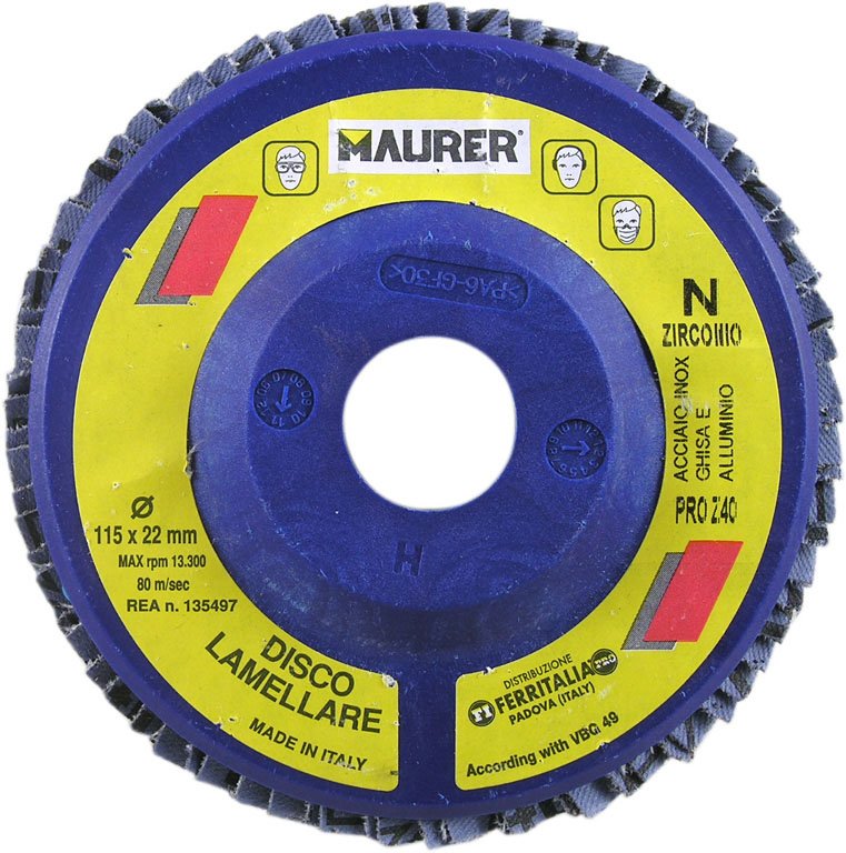 Disco lamellare MAURER allo zirconio con lamella rettangolare – platorello rinforzato con base interna piana senza inclinazione (ne consegue una pressatura lamelle meno compatta) – diam. 115×22