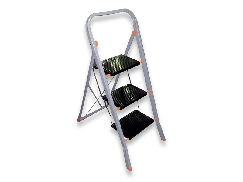 Sgabello d’acciaio in tubolare 20x15mm. Gradini acciaio 20×30 cm. Verniciato con brillanti polveri epossidiche nei colori: Telaio grigio, gradini neri, plastiche arancio.