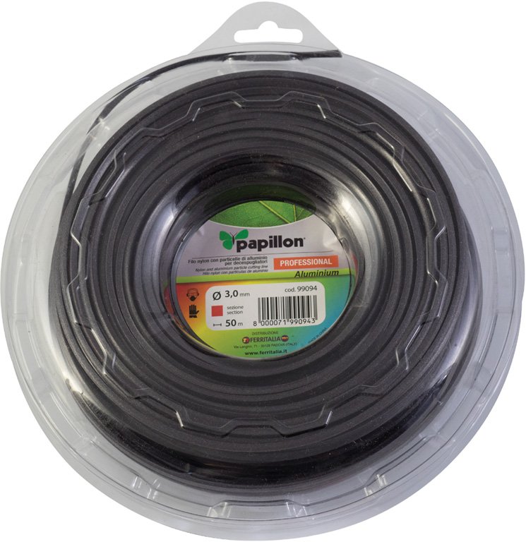 Filo per decespugliatori PAPILLON – in nylon con particelle di alluminio – profilo quadro – tipo professionale – confezione in dispenser