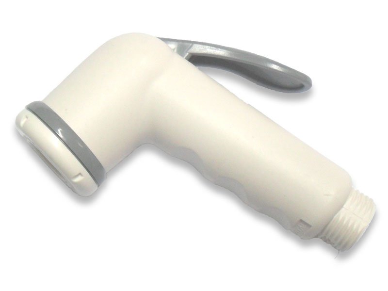 Telefono doccia in ABS bianco con pulsante.