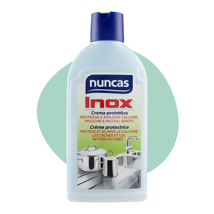 Crema detergente per la cura di tutte le superfici cromate e in acciaio inossidabile.Pulisce senza graffiare ed elimina i depositi di calcare ritardandone la formazione. E’ igienico…indistruttibile e molto moderno! Che fascino l’acciaio inox … sempre più presente nelle cucine moderne, soprattutto se di design. Così bello e affascinante ma così facilmente …impressionabile! Ditate, aloni,…