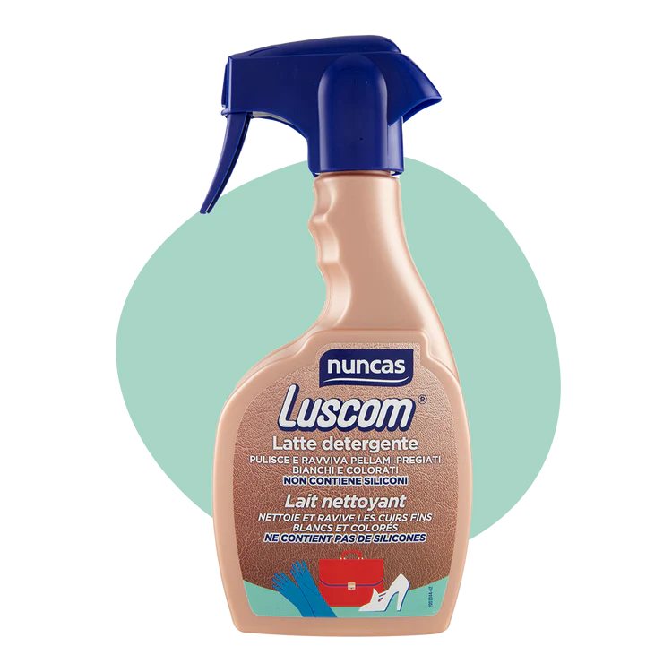 Luscom Latte Detergente è il prodotto specifico per la pulizia quotidiana di tutti gli oggetti in pelle anche i più delicati. La sua formula delicata rimuove in un attimo polvere, impronte e aloni senza disidratare la pelle o alterarne la colorazione. Arricchita con estratti di lanolina, rende la pelle morbida e setosa al tatto.