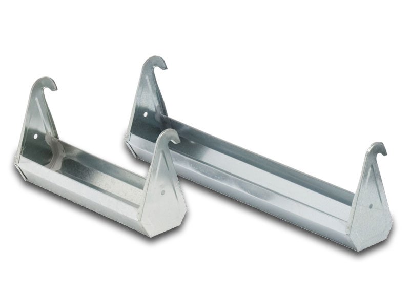 Abbeveratoio con ganci adatto a qualsiasi tipologia di gabbia per polli, realizzato in lamiera zincata.