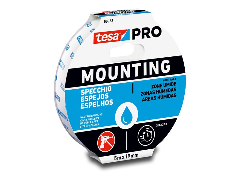 tesa® 4952 è un nastro biadesivo in schiuma di PE per applicazioni di fissaggio. E’ costituito da un supporto in PE ad elevata adattabilità ed un adesivo acrilico modificato. tesa® 4952 ha ottenuto la certificazione per il montaggio specchi nell’arredamento.
