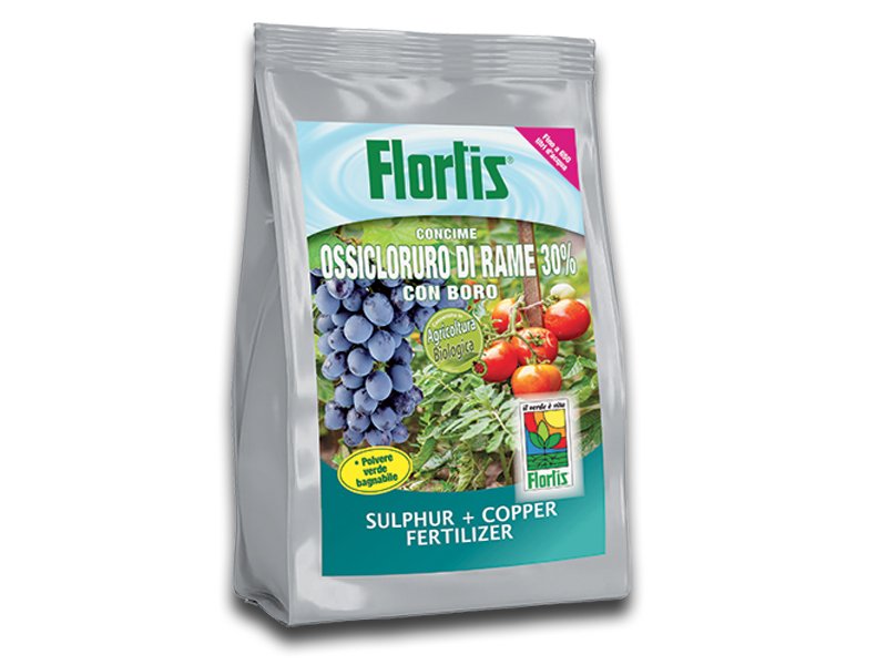 Concime a base di ossicloruro di rame formulato in polvere bagnabile, da utilizzare per prevenire e controllare le carenze di rame. Il rame è un elemento essenziale per la vita di tutte le piante: è un costituente di importanti enzimi, è necessario per la sintesi di clorofilla e contribuisce alla stimolazione delle difese naturali delle piante dai parassiti. Le carenze di rame si manifesta con ingiallimenti e formazione di macchie sulle foglie e atrofie dei giovani getti. I sintomi delle carenze di rame compaiono più spesso nei terreni ricchi di sostanza organica e aventi reazione alcalina. L’ossicloruro di rame svolge anche una importante azione nella prevenzione e nella cura delle malattie crittogamiche.