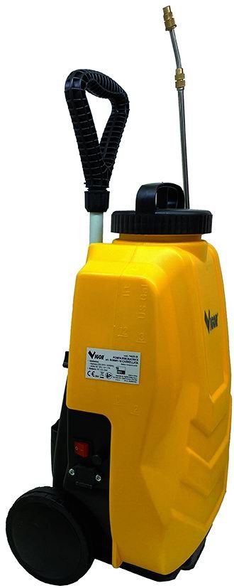 POMPE IRRORATRICI VIGOR SUMMY-16C CARRELLATA – batteria litio 12V/8Ah, lancia acciaio inox estensibile 50-100 cm, pressostato regolabile raccordo ottone, voltmetro a led, portata 3,1 l/min, pressione 5,5 bar, 16 l, con 2 ruote