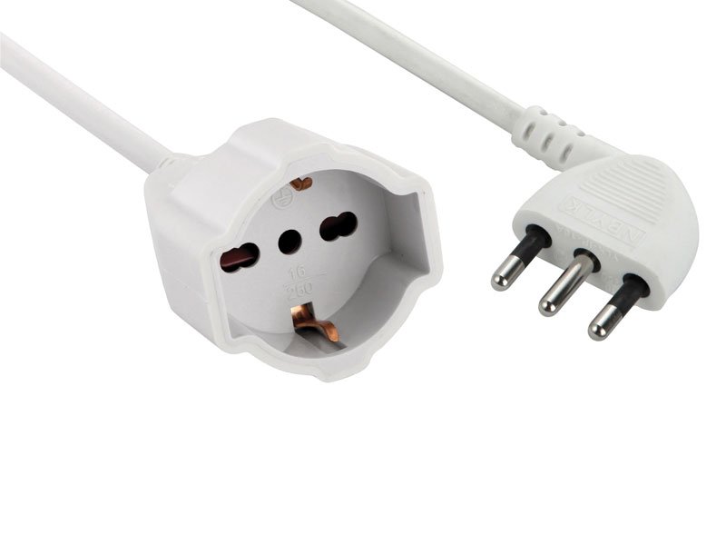 Cavo H05VV-F 3X1,50. Spina ribassata 16A. Presa Schuko + Bivalente (10/16A).