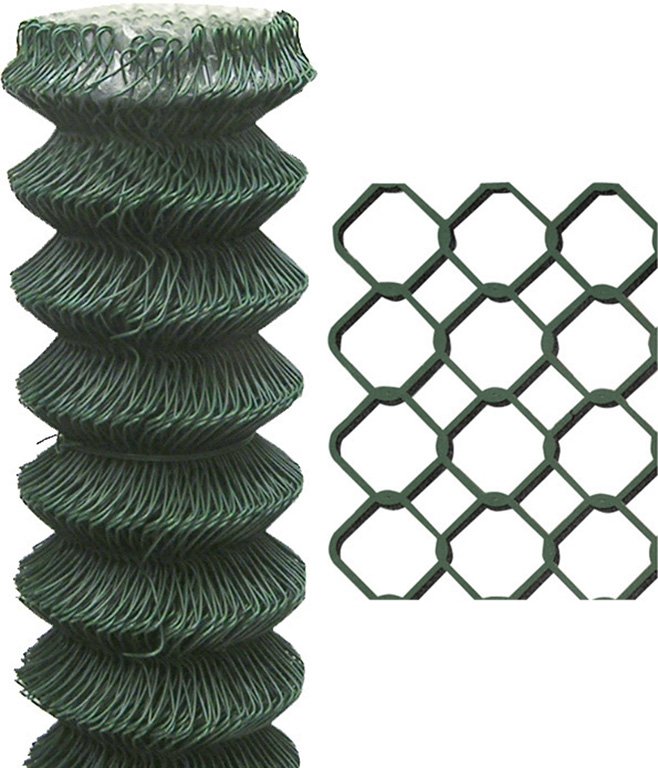 Rete PAPILLON a maglia sciolta a semplice torsione, prodotta con filo zincato e plasticato – maglia 50×50 mm – filo diam. interno 1,65 mm – diam. esterno 2,50 mm – colore verde – in rotoli da 25 metri