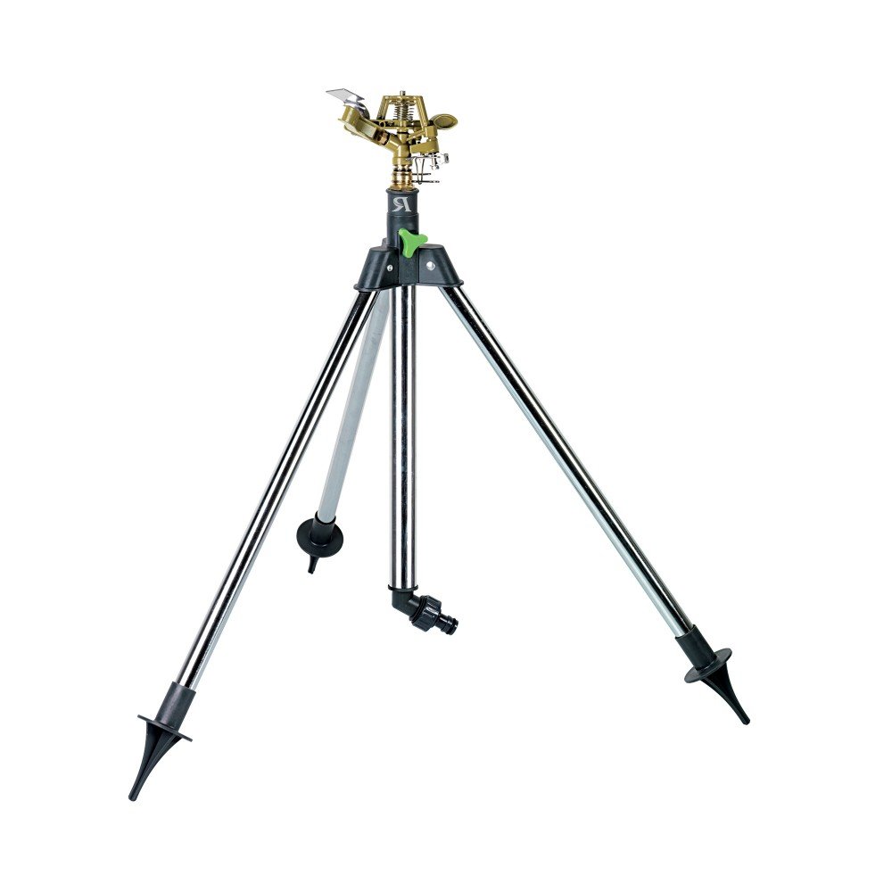 Strutturato su treppiede metallico da 62 cm a 99 cm. Settore regolabile da 0 a 360°. Attacco rapido per entrata acqua. Superficie innaffiata fino a 500 m2 (Ø 25 m). Pressione di esercizio : min 1 bar, max 4 bar.