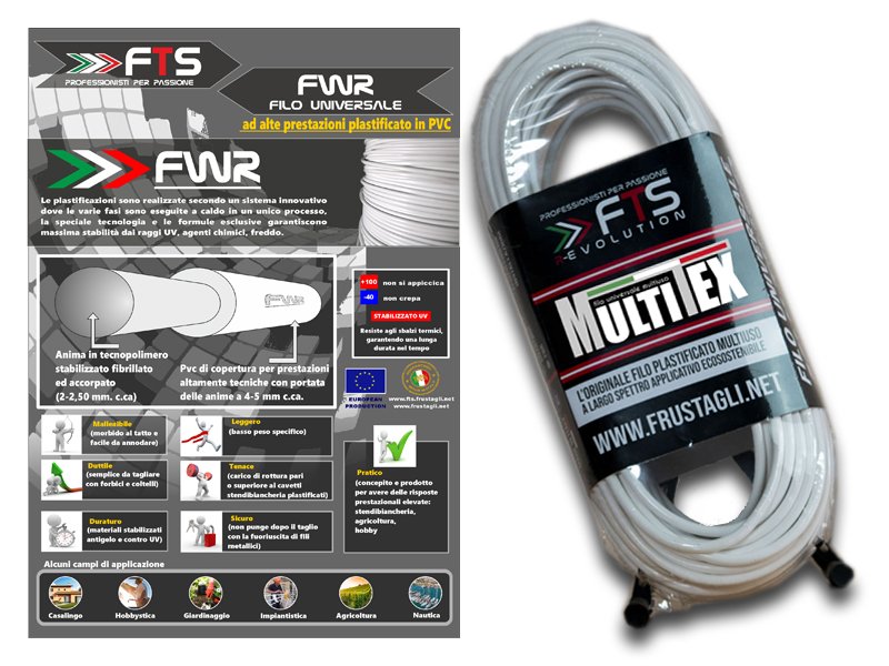 Anima in filato tecnopolimerico e rivestimento in pvc bianco anti UV e antigelo. Multiuso (Agricoltura, impiantistica, Giardinaggio, Casalingo,..)