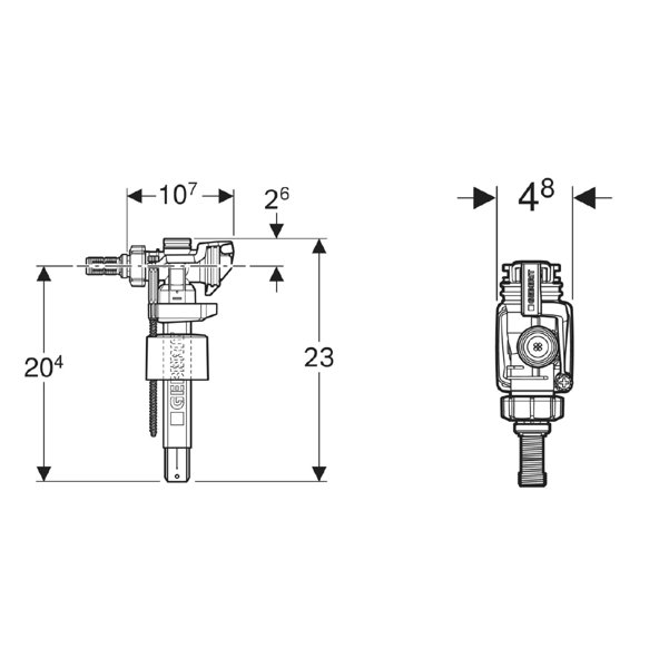 Rubinetto a galleggiante tipo 383 per cassette incasso. Allacciamento ibrido laterale, 3/8″, codolo in ottone Per l’installazione in cassette di risciacquo esterne con allacciamento idrico laterale