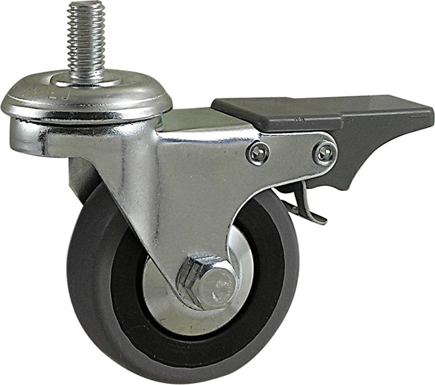 Ruota per mobili in gomma grigia con nucleo in poliammide – con supporto a codolo filettato con freno