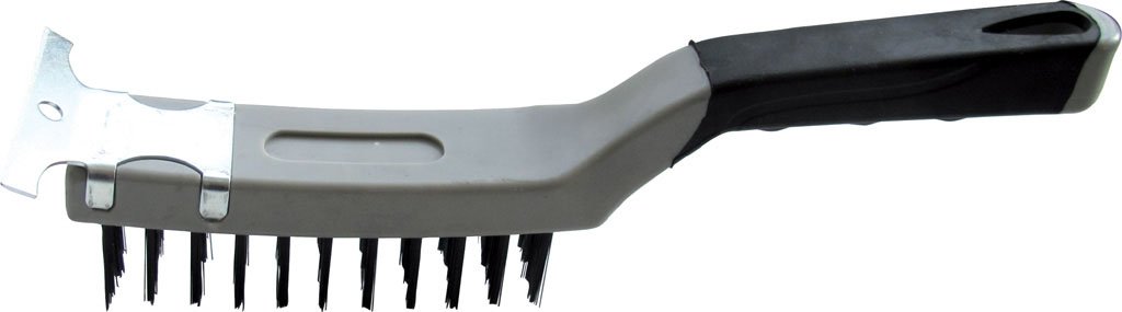 Spazzola a mano MAURER con fili in acciaio al carbonio – manico in gomma polipropilene e TPR – con raschietto