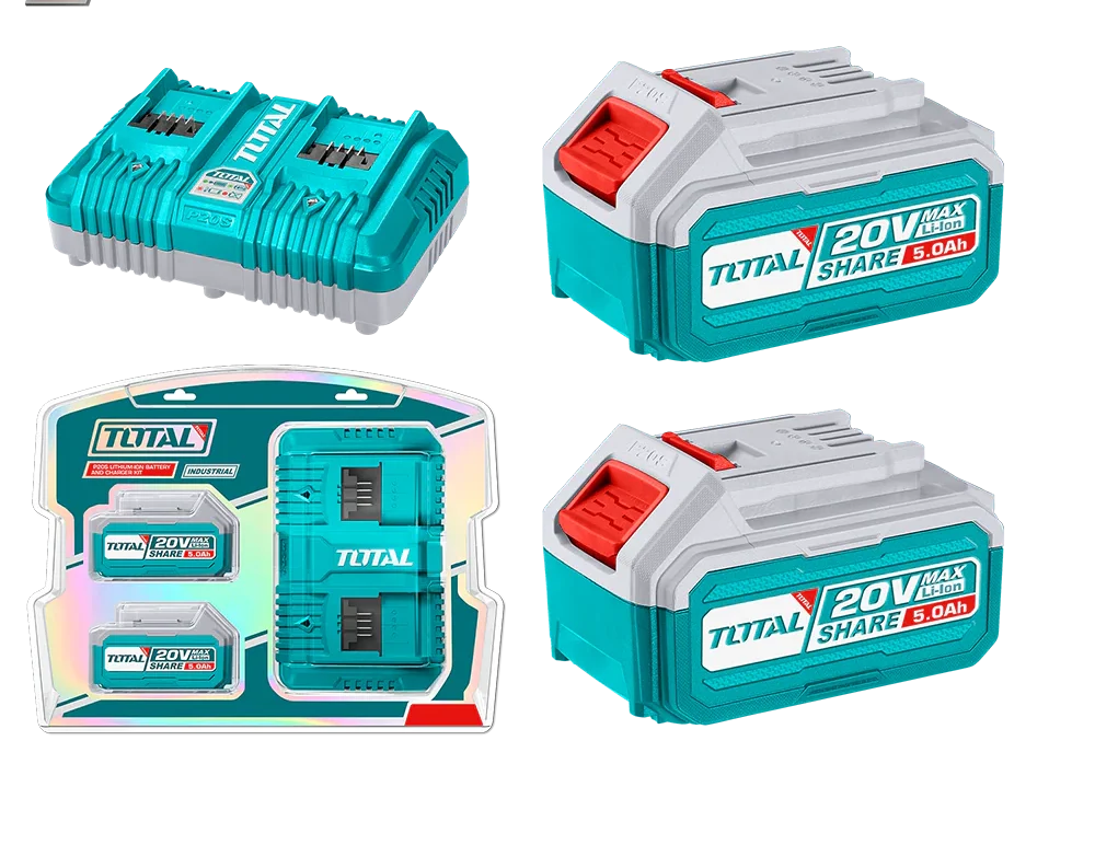 Un kit completo pensato per chi cerca potenza e praticità. Questo starter kit comprende due batterie ad alta capacità da 5,0 Ah e un caricabatterie rapido con doppia porta, ideale per ricaricare contemporaneamente due batterie da 20V. Le batterie sono dotate di indicatore LED che ti permettono di monitorare facilmente lo stato di carica.