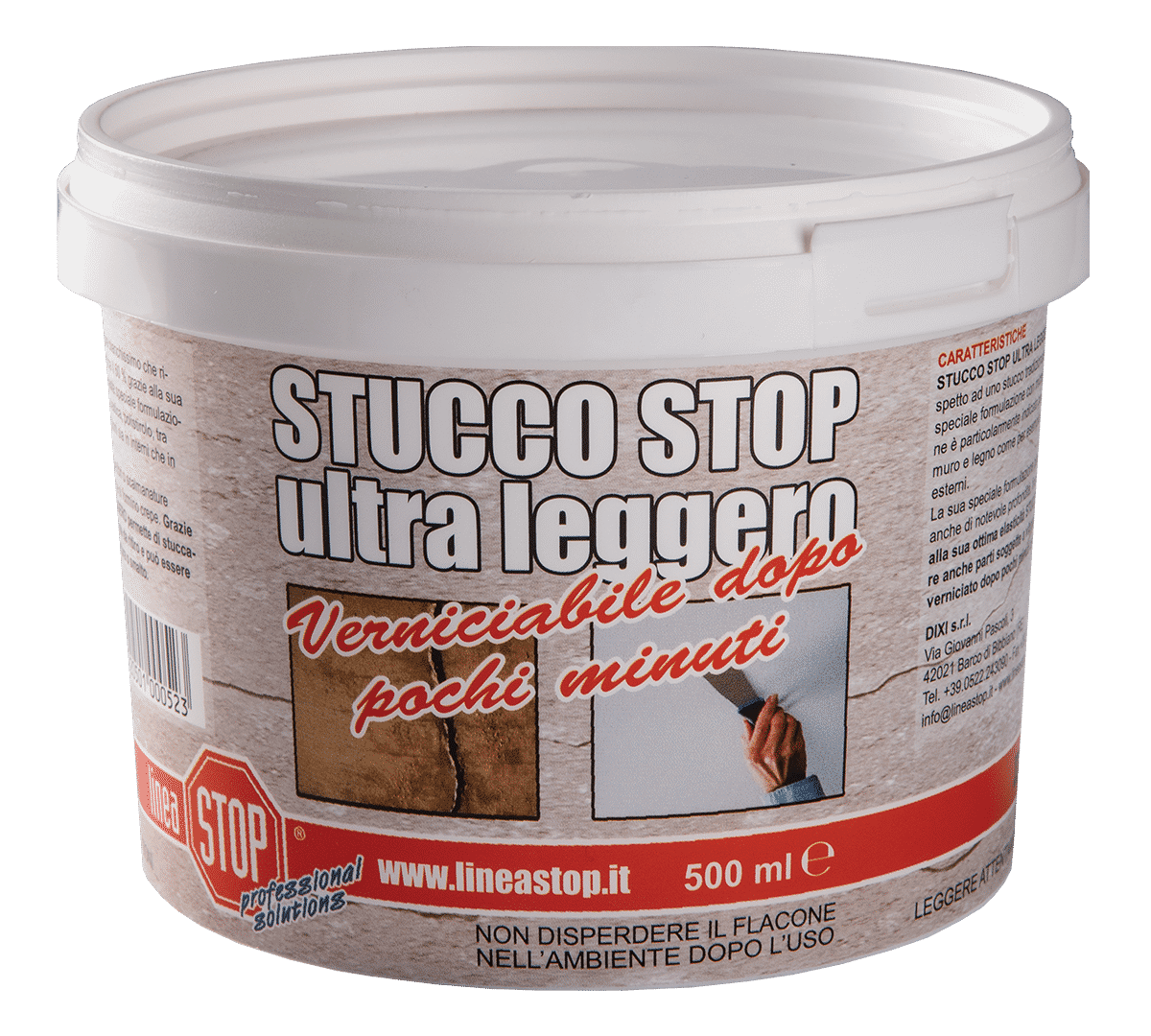Stucco di elevate prestazioni e di semplice applicazione, ne permette la verniciatura dopo pochi minuti con qualsiasi tipo di pittura.