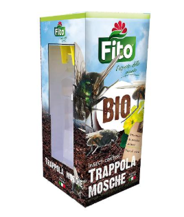 Efficace per la cattura delle piu’ comuni specie di mosche. Agisce grazie ad una particolare esca che, diluita in acqua, forma una soluzione dal forte potere attrattivo per le mosche.