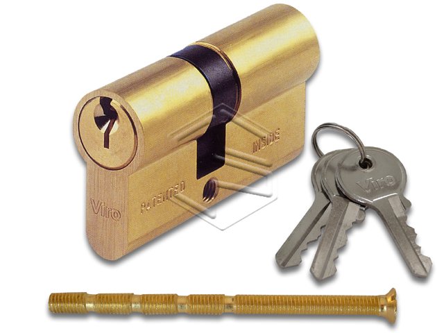 Viro serie 700 cilindro profilato con apertura di emergenza e chiave a profilo Viro. Corpo in ottone massiccio trafilato. Meccanismo con pistoncini e contropistoncini in ottone, molle in bronzo fosforoso. Chiavi n° 3 in dotazione. .
