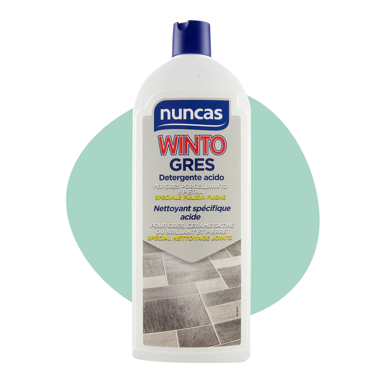 Detergente acido per la pulizia di pavimenti in gres porcellanato satinato e lucido, in ceramica, klinker e pietra non calcarea.