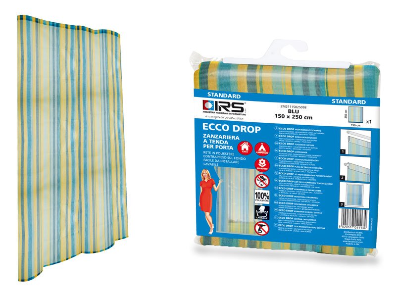 Zanzariera a tenda ideale per porte e per applicazioni all’aperto come Gazebo-Verande o Porticati. La morbida rete in poliestere nella colorazione Fantasia Blu conferisce un effetto morbido e luminoso. Le misure di larghezza e di altezza indicate sul prodotto si e adattano al vano finestra come con le comuni tende. Soluzione mobile,viene applicata su di un tubo portatenda attraverso l’anello passatubo e rimane tesa grazie al fondo con filo pesante.